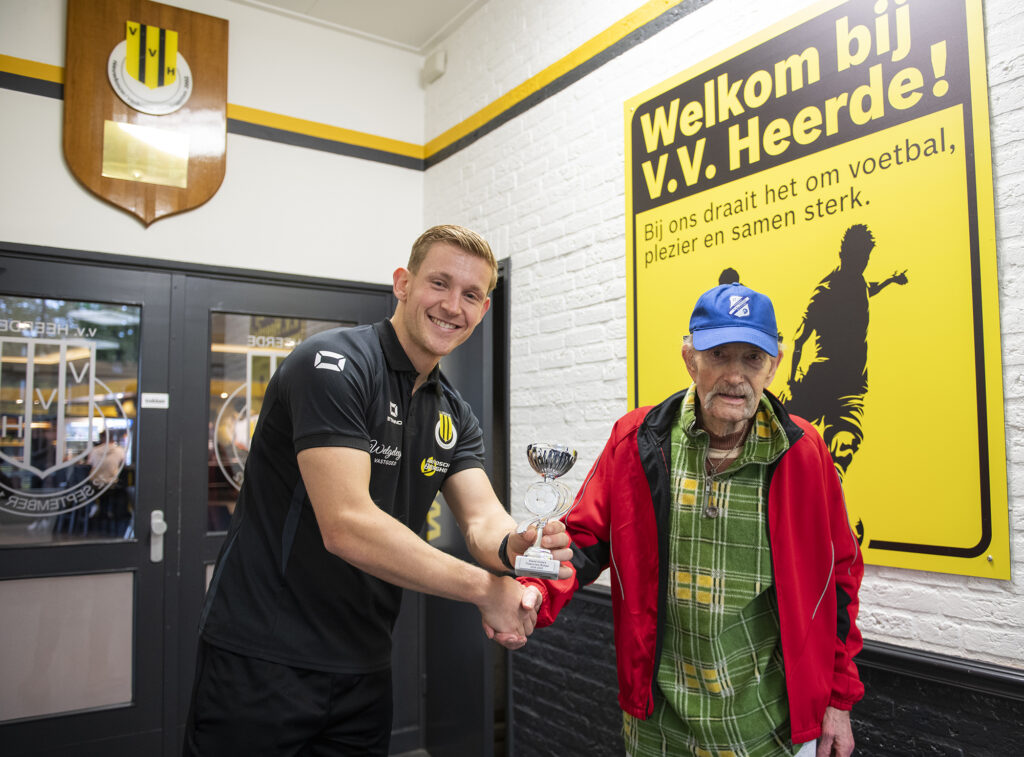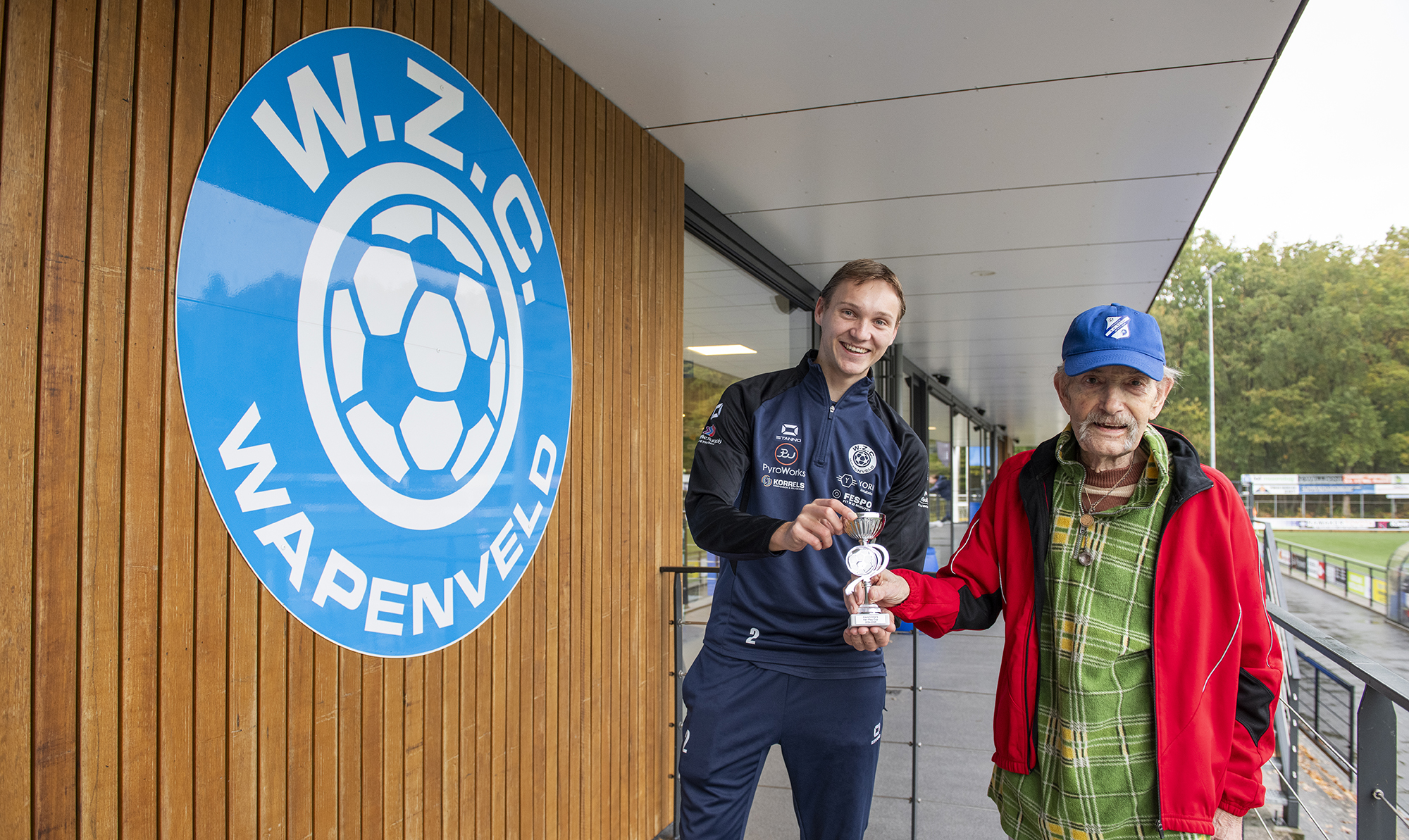 Ik ben onlangs op pad geweest met de illustere, 86-jarige sportverslaggever Arend Vinke. Zo waren we bij de Wapenveldse voetbalvereniging WZC. Het eerste team van deze vereniging heeft afgelopen seizoen namelijk de Fair Play Cup seizoen 2024-2025 gewonnen. Uiteraard mocht de naamgever van deze welbekende wekelijkse voetbalrubriek uit de lokale weekkrant deze beker zelf uitreiken. Vervolgens gaf hij de Topscorers Bokaal seizoen 2024-2025 aan voetballer Lucas de Jong (vorig jaar actief bij vv Emst, dit seizoen voetballend bij vv Heerde).